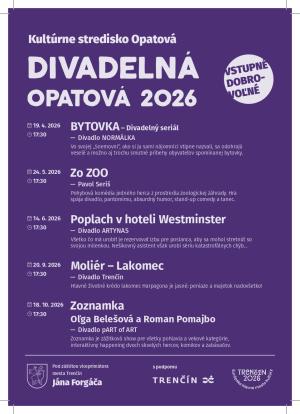 Kultúrne stredisko Opatová Vás srdečne pozýva na divadelné predstavenia v roku 2026.