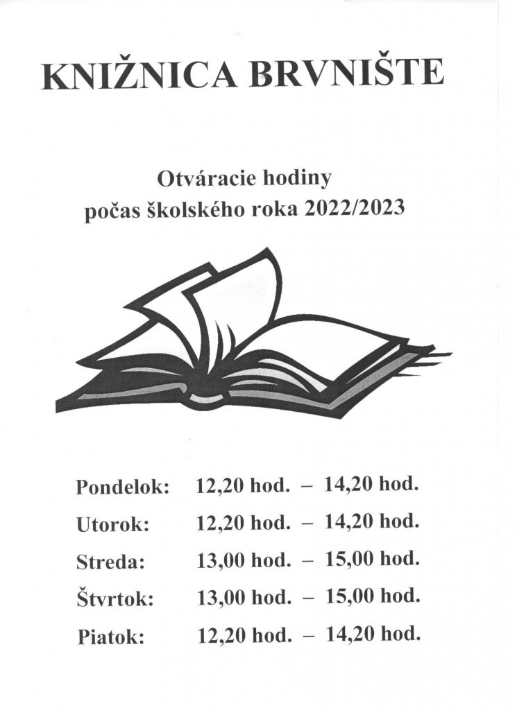 Knižnica-otváracie hodiny počas šk.roka 2022/2023