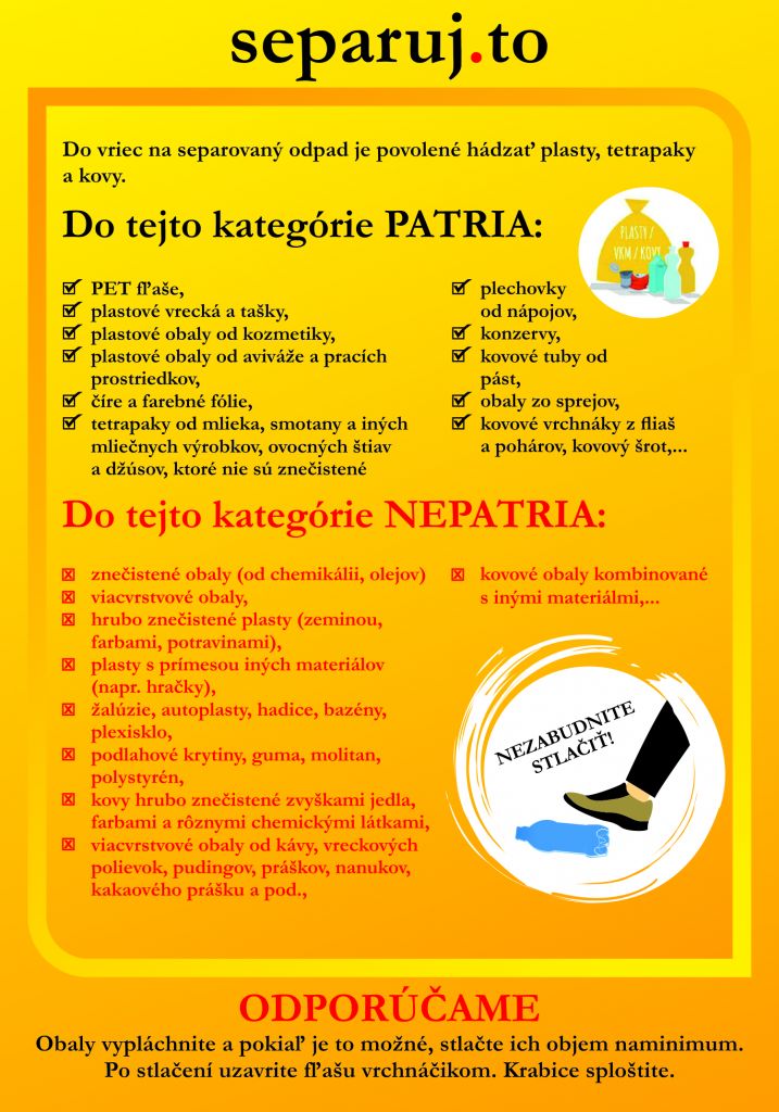 do vriec na separovaný odpad je povolené hádzať plasty, tetrapaky a kovy